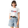 This crop top is made of 100% combed cotton, which makes the shirt extremely soft and more durable than regular cotton shirts. The relaxed fit and dropped shoulders ensure comfortable wear, while the cropped length makes it perfect for spring and summer.